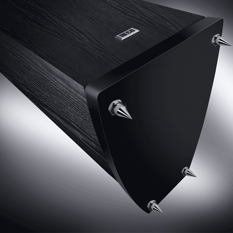 Heco Victa Prime系列當中的落地型式的502主聲道喇叭,是該系列當中體型最小的落地喇叭,雖說它小,高度也有將近一公尺。要是再搭上202、102,輕輕鬆鬆就能組合出一套完整的多聲道系統。 箱體部分,502使用MDF板材製作出兩側帶有弧度的箱體構造,如同水滴一般前寬後窄,這種非平行面的箱體設計可以減少箱內駐波干擾,同時也可以提升箱體剛性。從外觀來看,502是採用3單體2.5音路設計,中央的25mm軟半球高音搭載磁流體散熱系統,擁有高達40kHz的高頻延伸。另外還有一只170mm中低音單體、一只6.5吋低音,一個負責中音、一個負責低音,振膜採長纖維紙盆設計,這是Heco的一貫特色,搭配上長衝程懸邊,低頻可下潛至35Hz。請注意,這只是Victa Prime系列中最嬌小的落地喇叭喔!